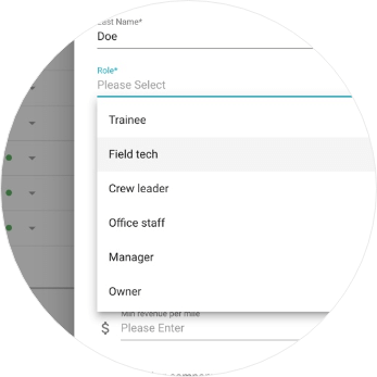 - Set owner, manager, office staff, crew leader or field tech roles.