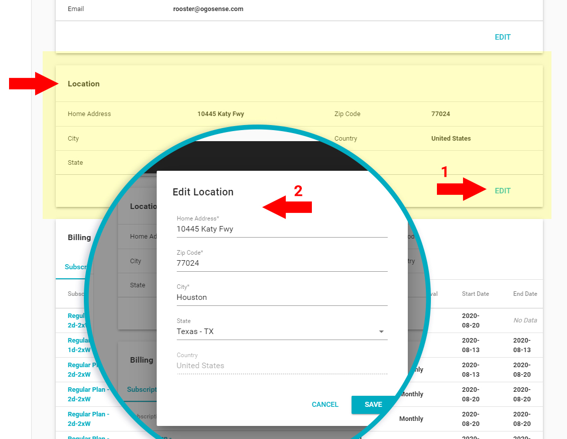 You may update the client service address within the Location section > Edit. Any change of client address will automatically cancel the existing subscription and create a new one. After the address change client will be unassigned and you will need to assign the service location with a field tech and service days again. This is because a new address may be in the area serviced by another tech. To assign the client click on the Assign button next to Actions.