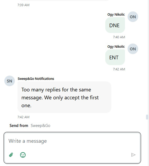 If they respond with anything other than “DNE” or “ENT,” they will receive a message letting them know the reply is invalid.