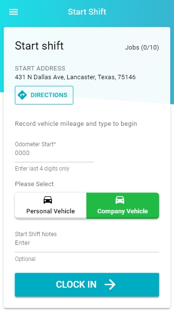 When you complete your work, then click “End Shift.” You’ll be asked to enter the last 4 digits of your vehicle odometer and the end shift time will be automatically recorded.
